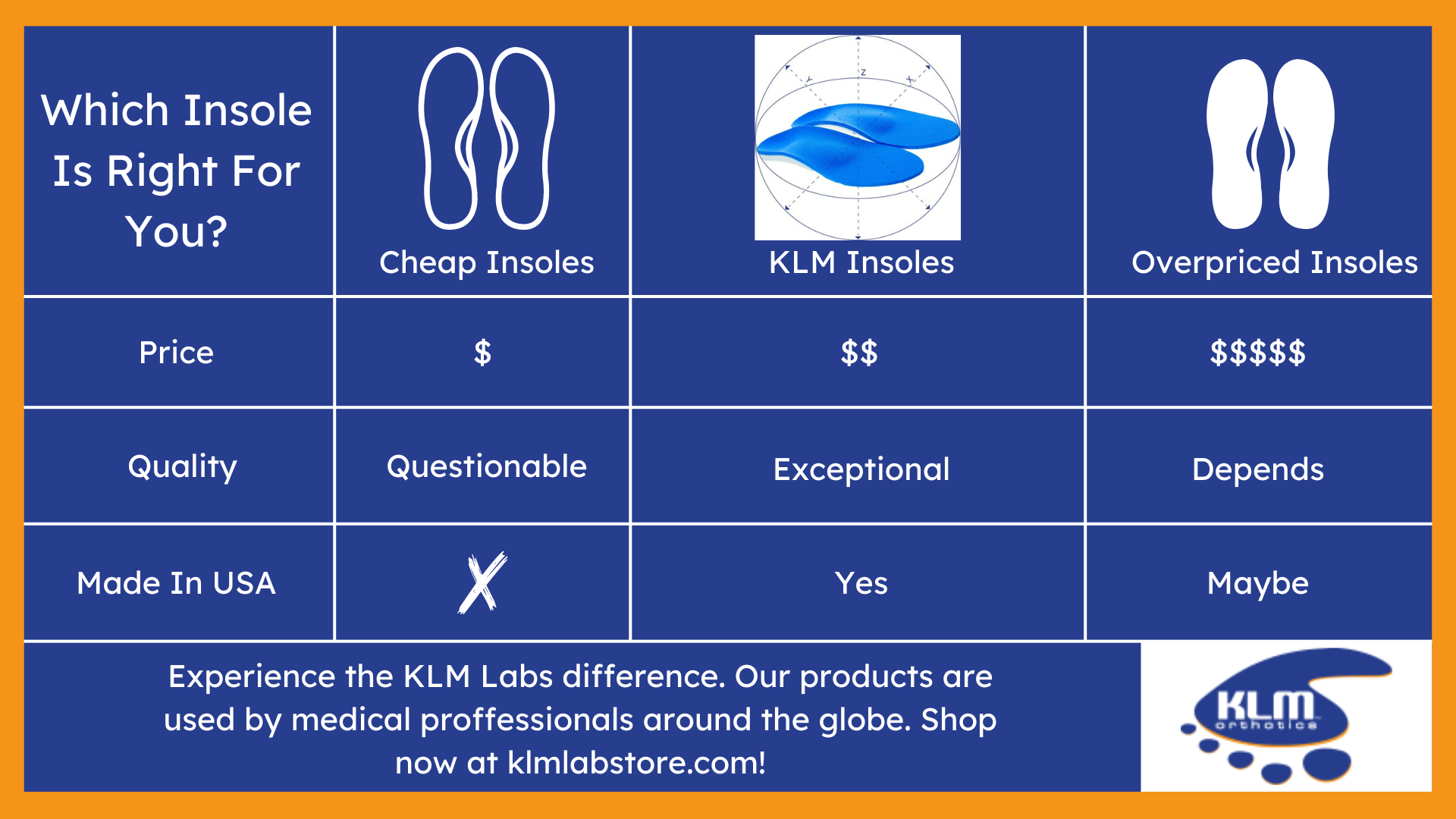 No matter your situation, you’ll find the custom orthotics and other products you need at KLM Labs.